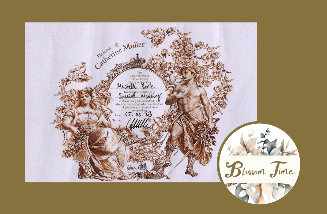 Michelle dedicated herself to furthering her craft, studying advanced flower arrangement techniques worldwide. One notable chapter in her journey was in Paris, where she honed her skills under the tutelage of Catherine Muller, a renowned figure in the world of floral artistry. This enriching experience has become the essence of Blossom Time—a fusion of global inspirations and timeless elegance.