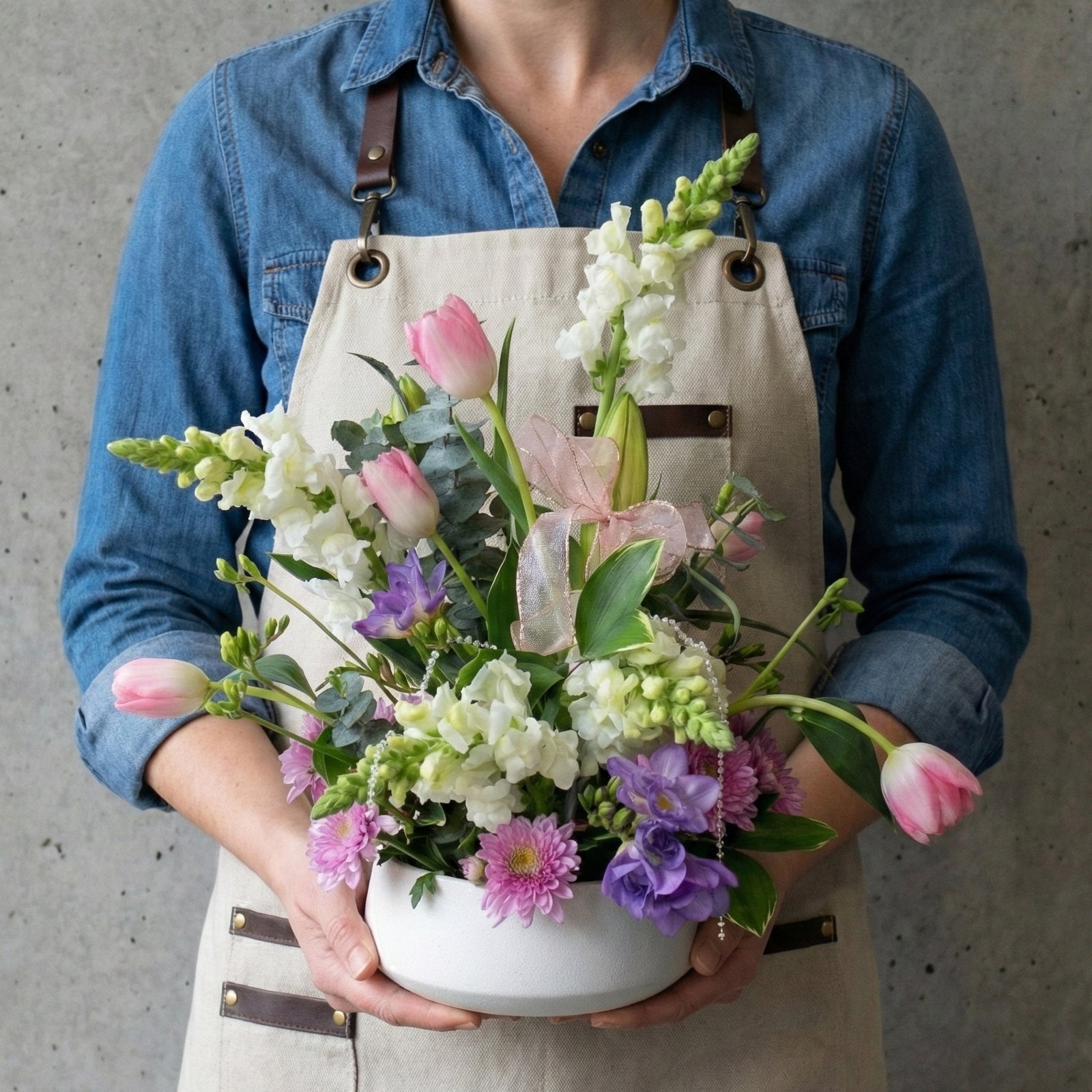 Please note that specific blooms may vary due to seasonality. Substitutions will always preserve the fresh garden style and cheerful colour palette pictured.