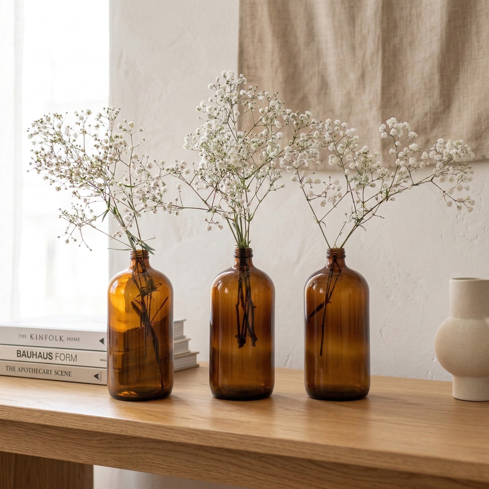 Presenting 'Fog' – a stylish interior accessory designed to elevate any space. Featuring delicate Gypsophila stems artfully arranged in dark brown glass vases, this curated piece is perfect for modern home décor or gifting.