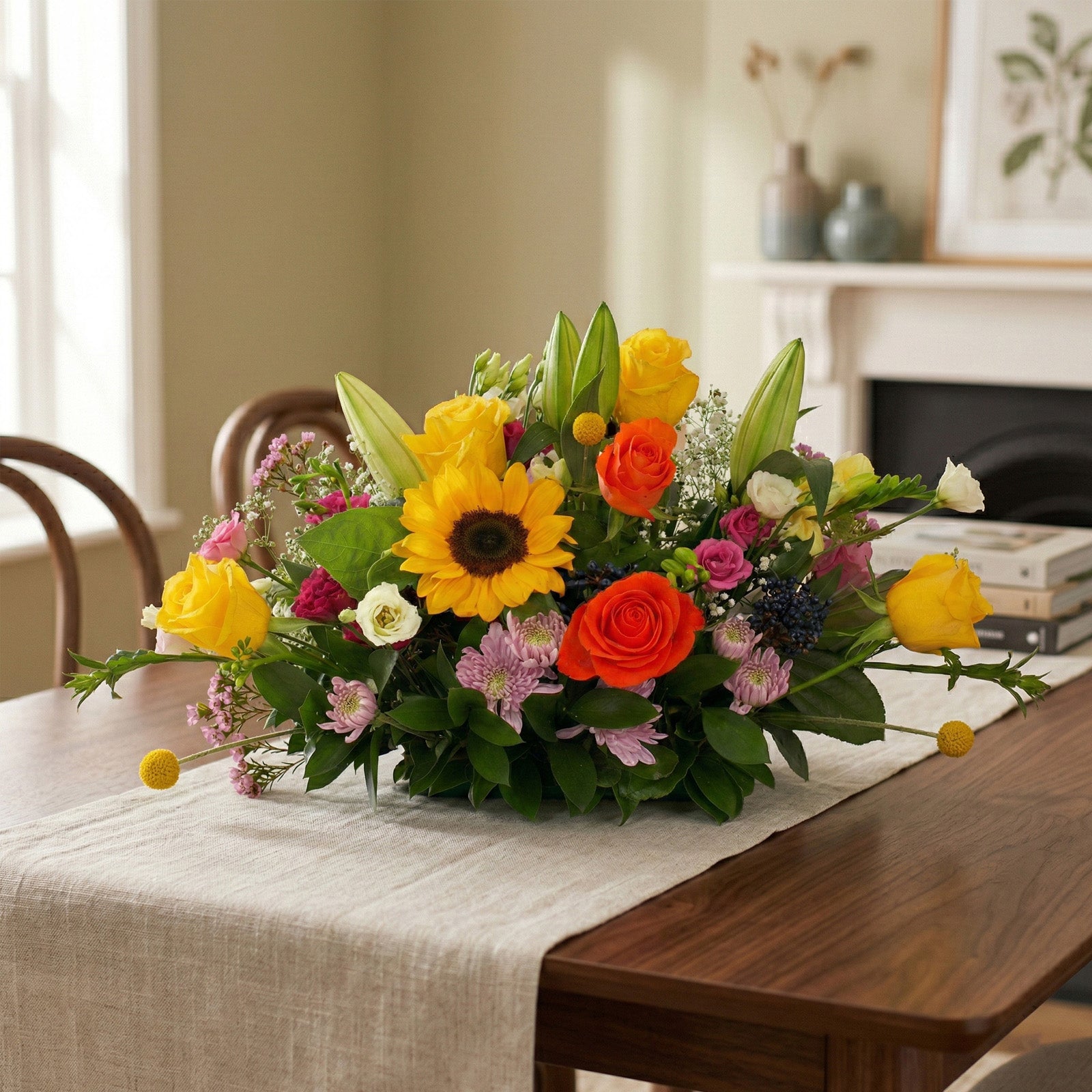Bring the essence of a lavish oasis indoors with our 'Small Garden' arrangement. Our skilled florists meticulously arrange opulent, mixed-colour blooms and lush seasonal greens to create an enchanting display.