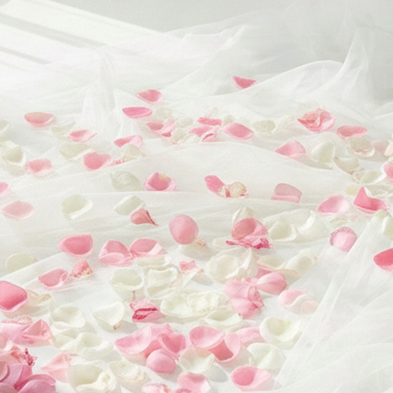 • Décor: A versatile fabric set (ideal for table styling, wall decoration, or a romantic petal walk) paired with a generous sprinkle of fresh flower petals.